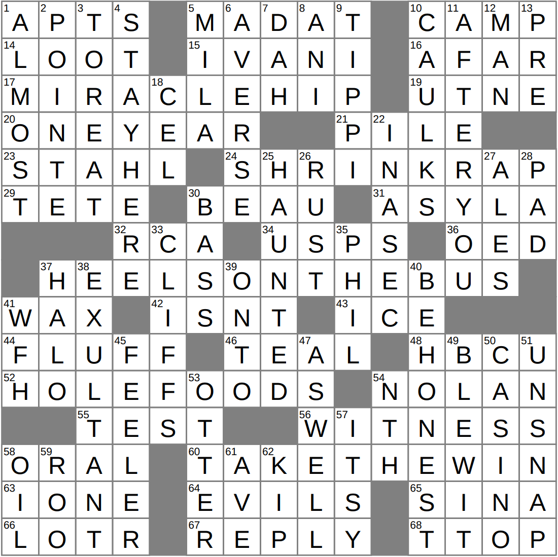 • 37A Jerks riding public transit? : HEELS ON THE BUS (“Wheels on the Bus” – W)