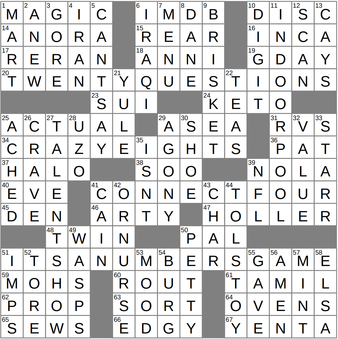 • 51A “You must consider the odds,” and what can be said about 20-, 34-, or 41-Across? : IT’S A NUMBERS GAME
