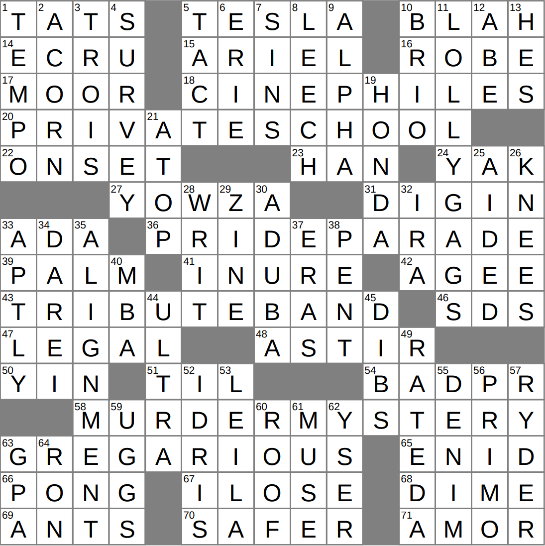 - 58A “The Case of the Disappearing Crows,” e.g.? : MURDER MYSTERY (A murder of crows)