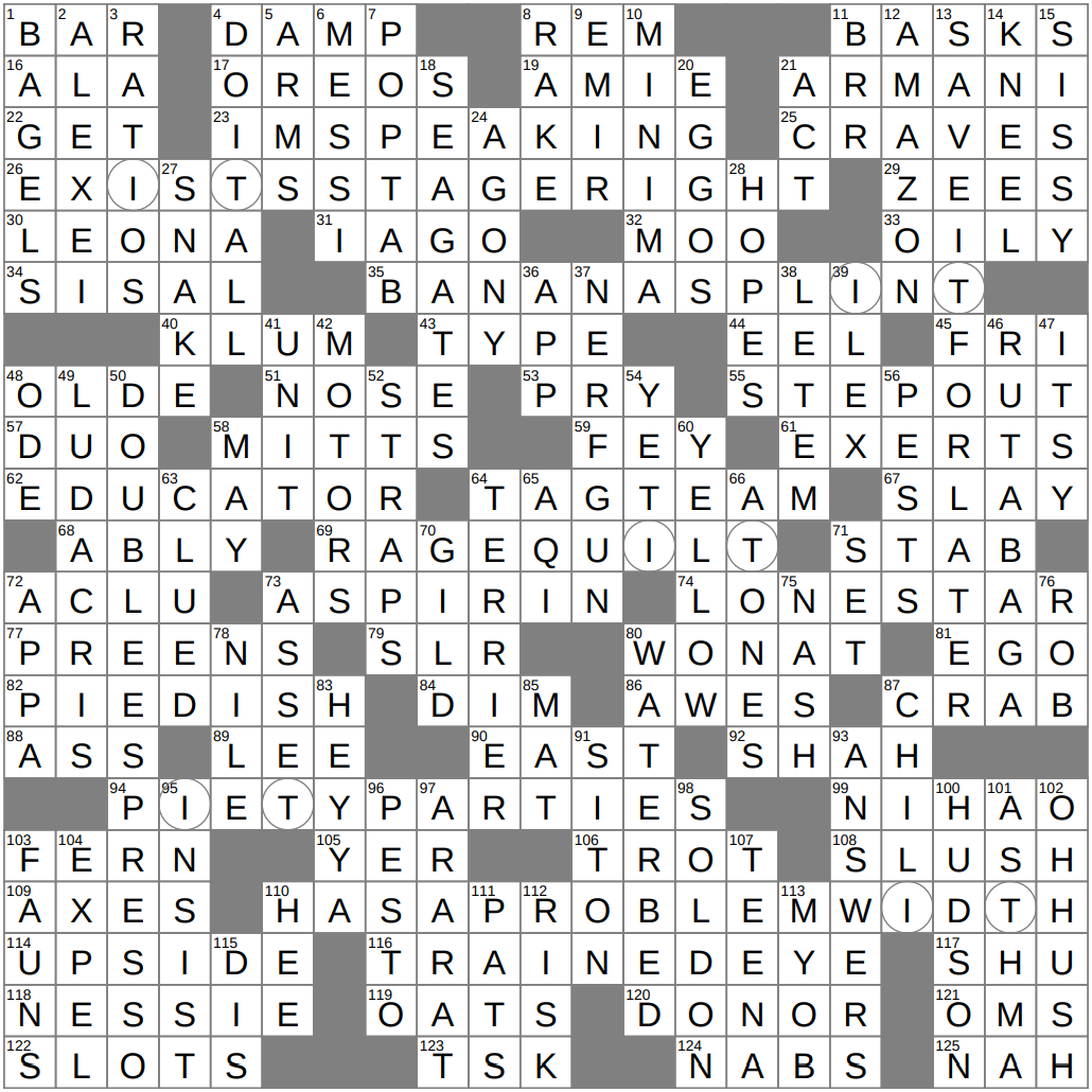 - 35A Support for a fractured fruit? : BANANA SPLINT (from “banana split”)
